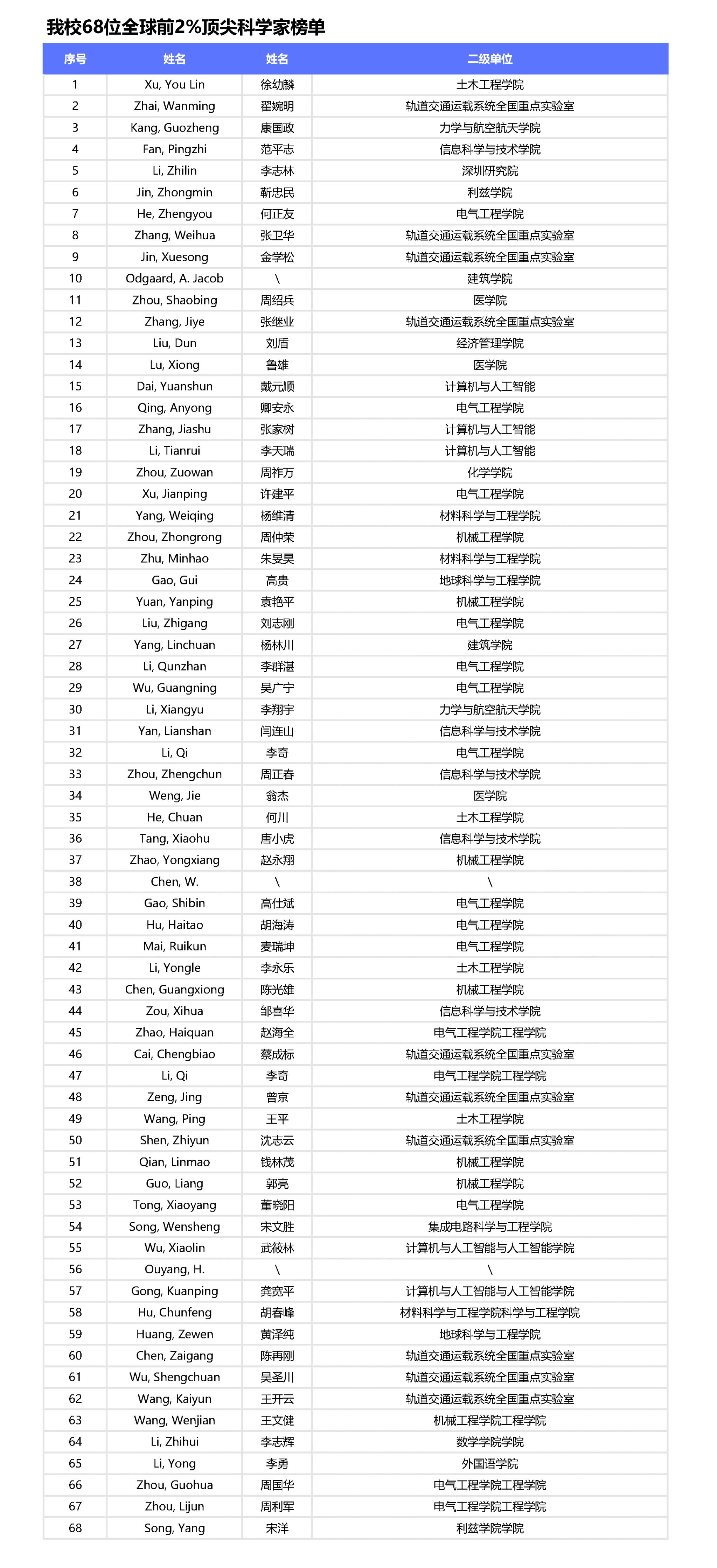 当地时间9月19日,斯坦福大学(Stanford University)和国际权威学术出版社爱思唯尔(Elsevier)共同发布2025年全球前2%顶尖科学家榜单(World's Top 2% Scientists),我校“终身影响力科学家”排名39名。